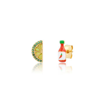 14k Gold Enamel Tabasco and Lime Stud Earrings Simple Fashion Trendy Designer Jewelry Statement Fashionable Earrings Wholesale